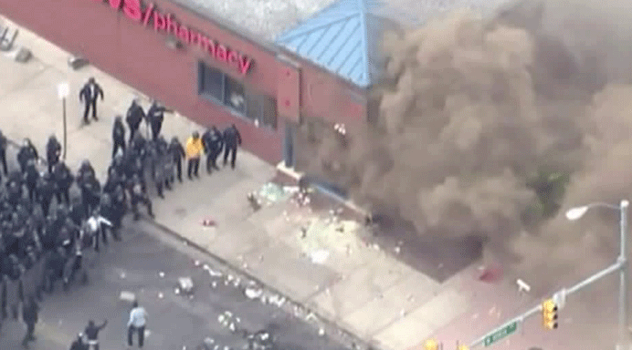 Az egyik korábban kirabolt gyógyszertár füstöl, felgyújtották.