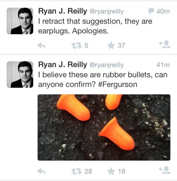 Füldugót néz gumilövedéknek. Riporterrõl van szó, tõle mennek a hírek az újsághoz (HuffingtonPost) és onnan emberek millióihoz.